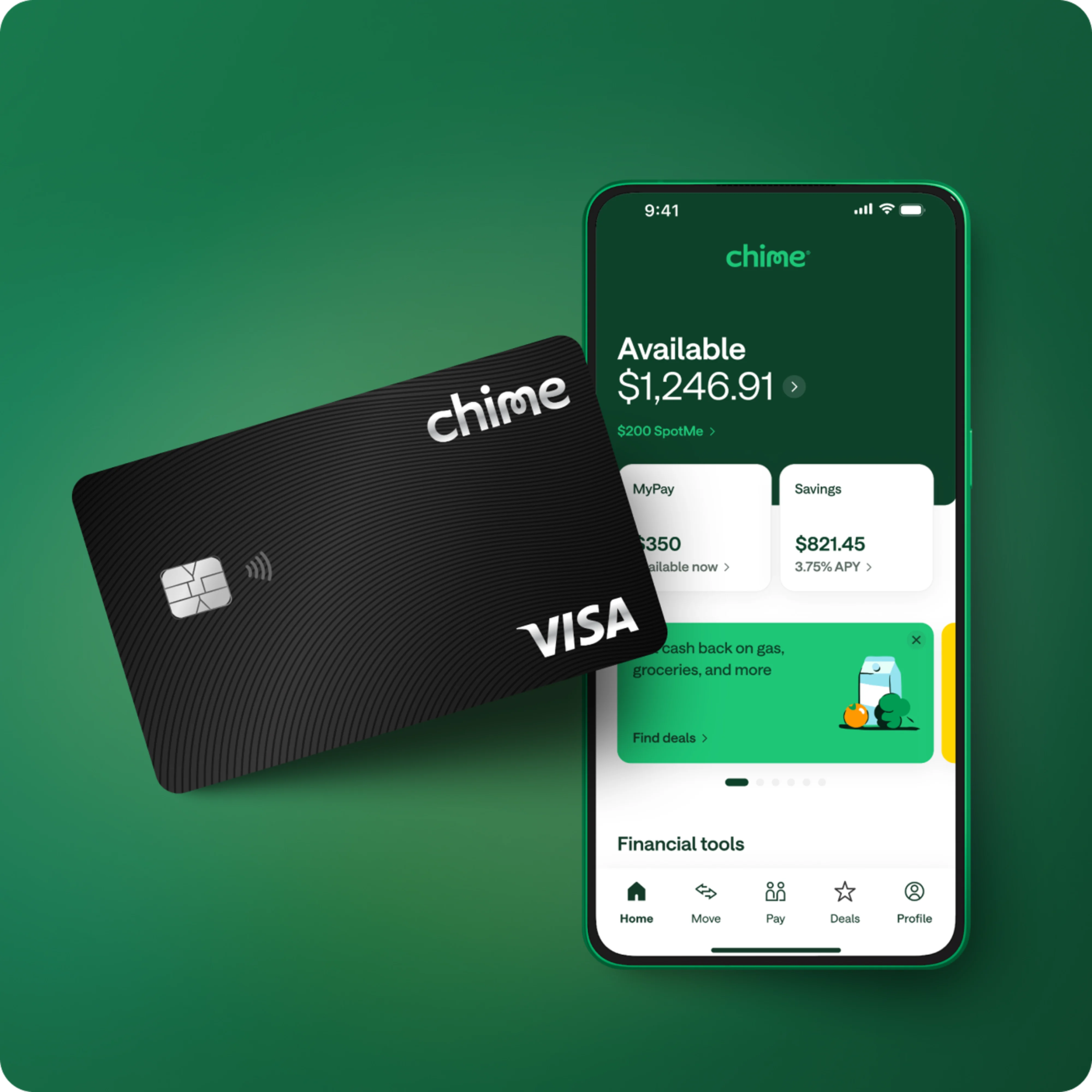 Spend smarter every day when you bank fee-free through Chime— get cash back9, safer credit building10, high-yield savings, payday when you say, and more.